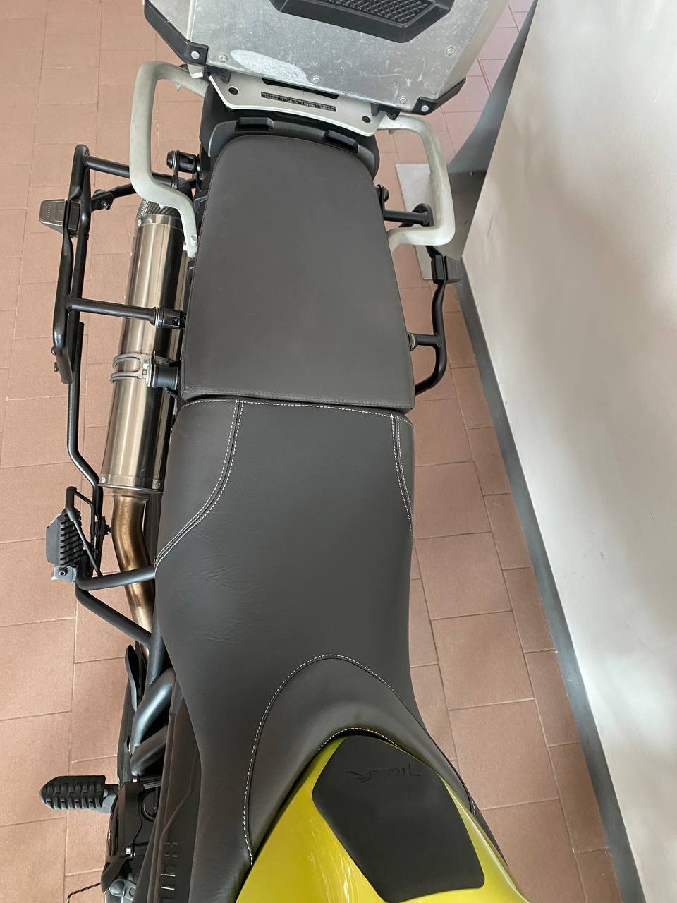 Moto super accessoriata, pronta per viaggiare: